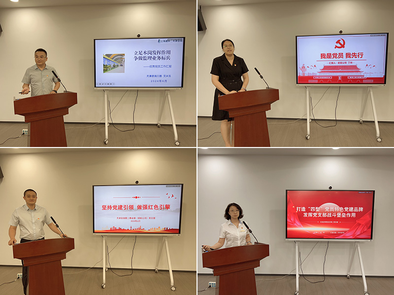 先進基層黨組織天津咨詢第二事業(yè)部(招標公司)黨支部書記于浩鵬、泛亞咨詢黨總支第二黨支部書記王然,優(yōu)秀共產(chǎn)黨員代表第一事業(yè)部(宏亞公司)丁月、第三事業(yè)部(成套監(jiān)理公司)艾興玉分別作典型交流發(fā)言。