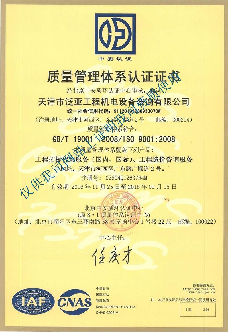 招標、造價質(zhì)量體系認證