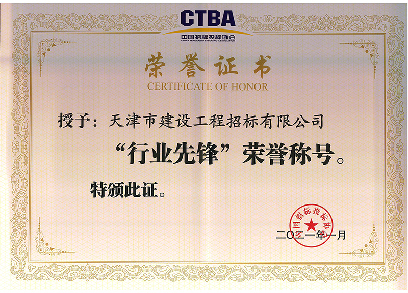 招投標(biāo)協(xié)會“行業(yè)先鋒”榮譽(yù)